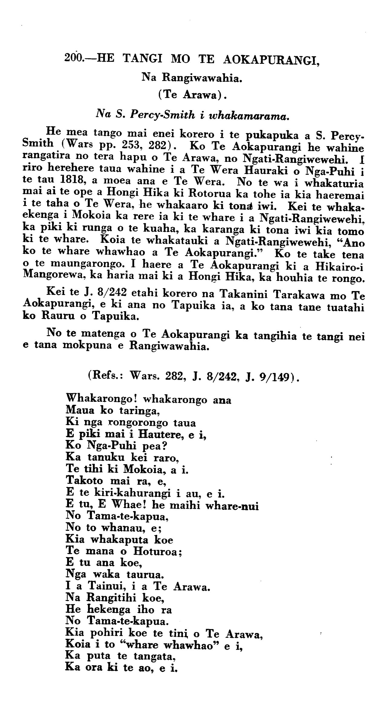 Smith (Wars pp. 253, 282). Ko Te Aokapurangi he wahine