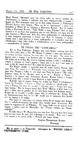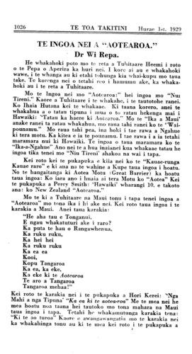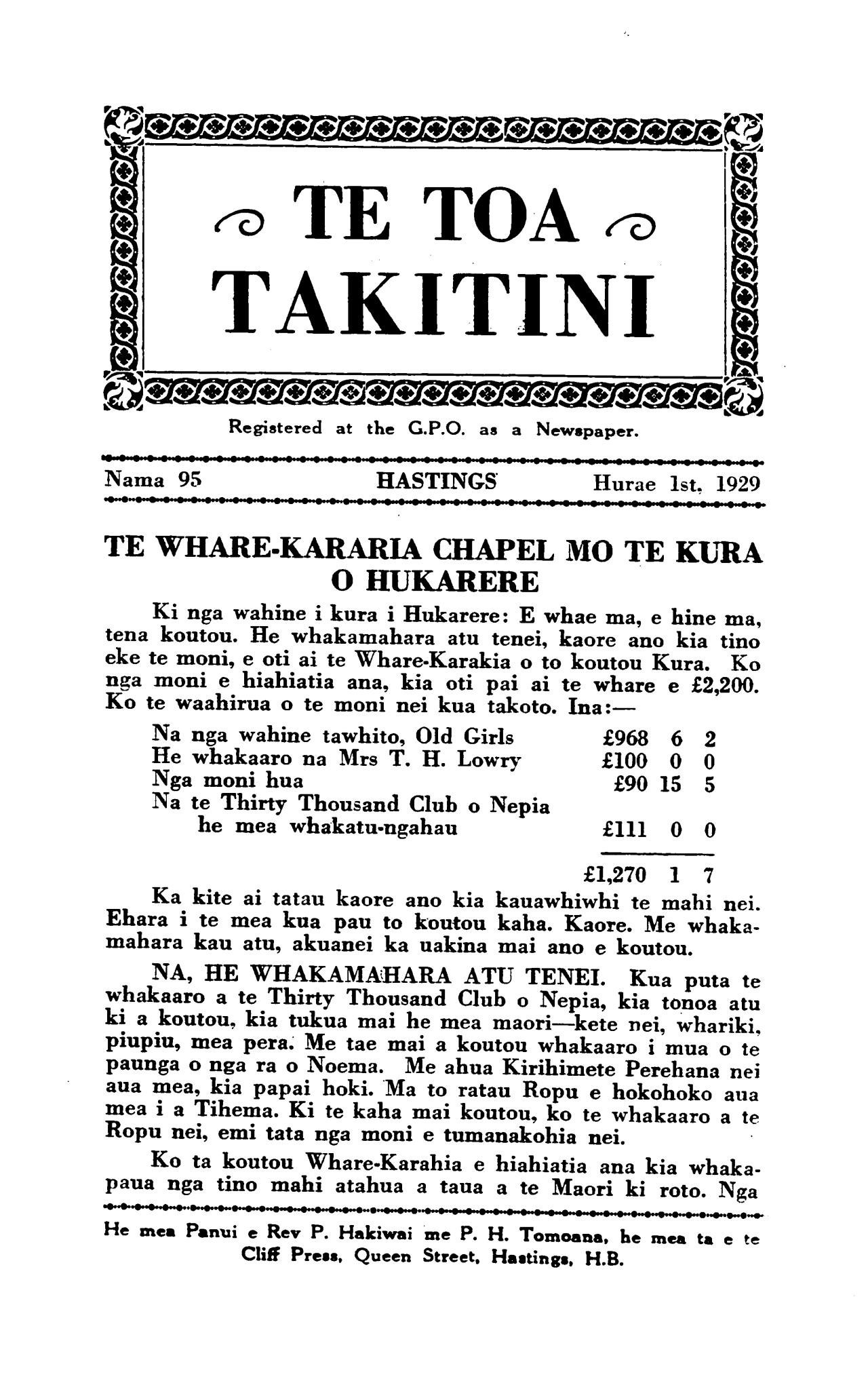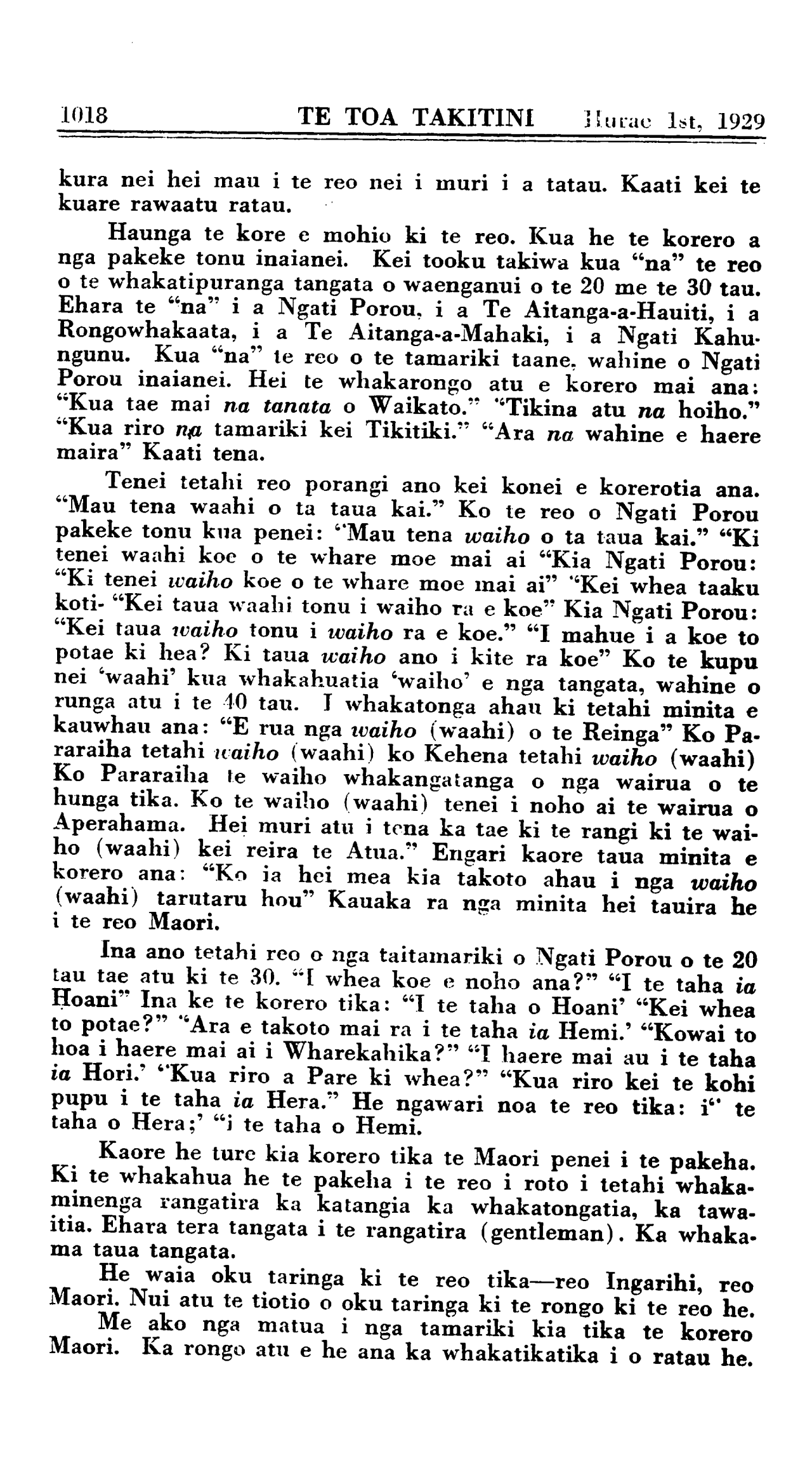 1018 TE TOA TAKITINI Hurae 1st, 1929