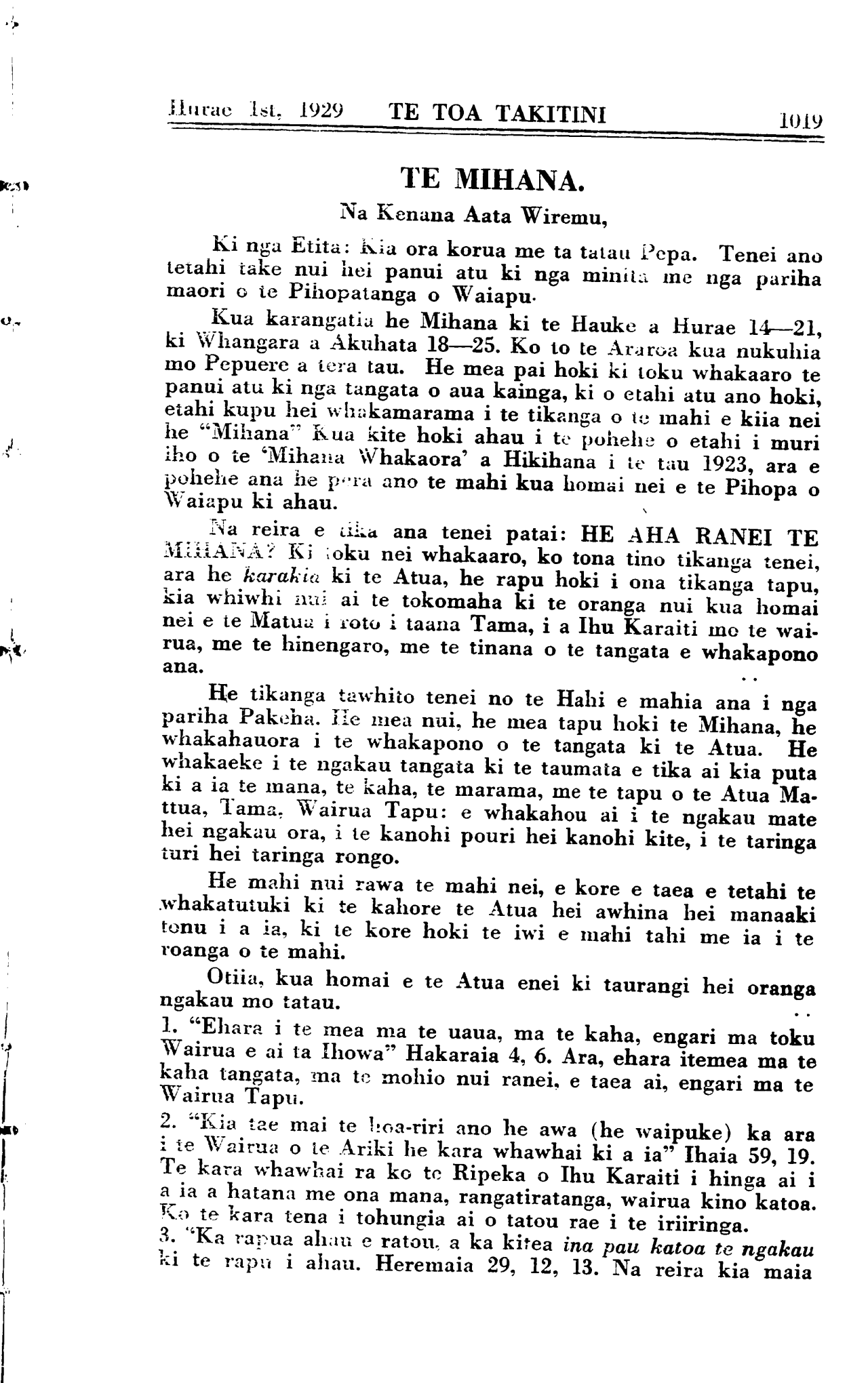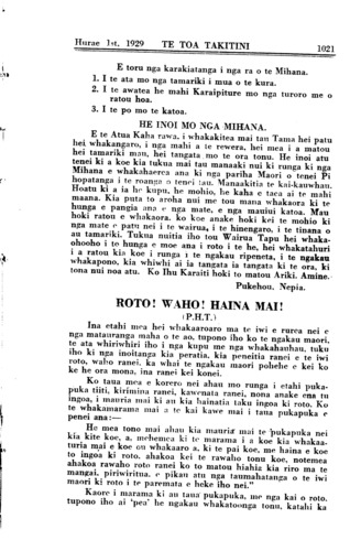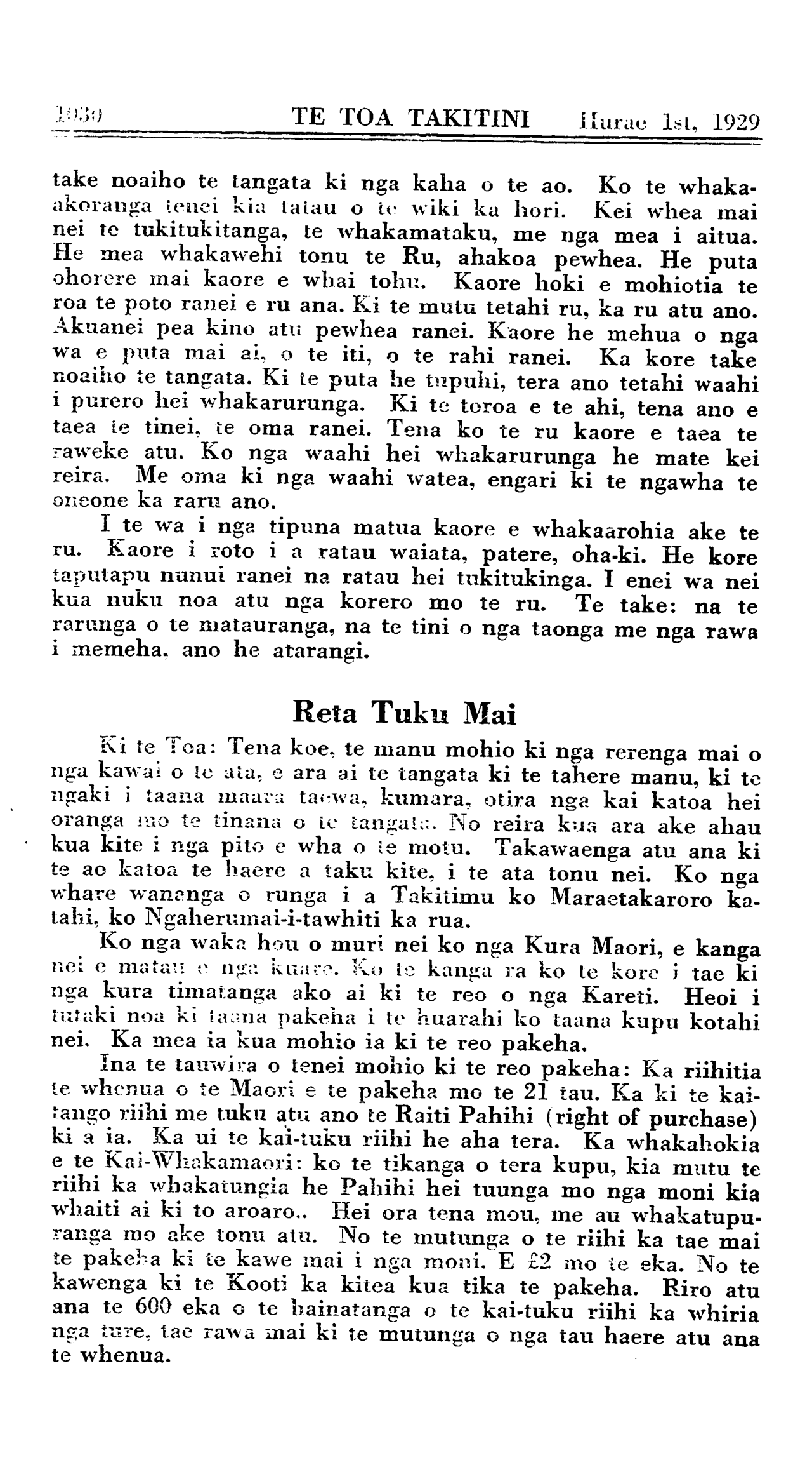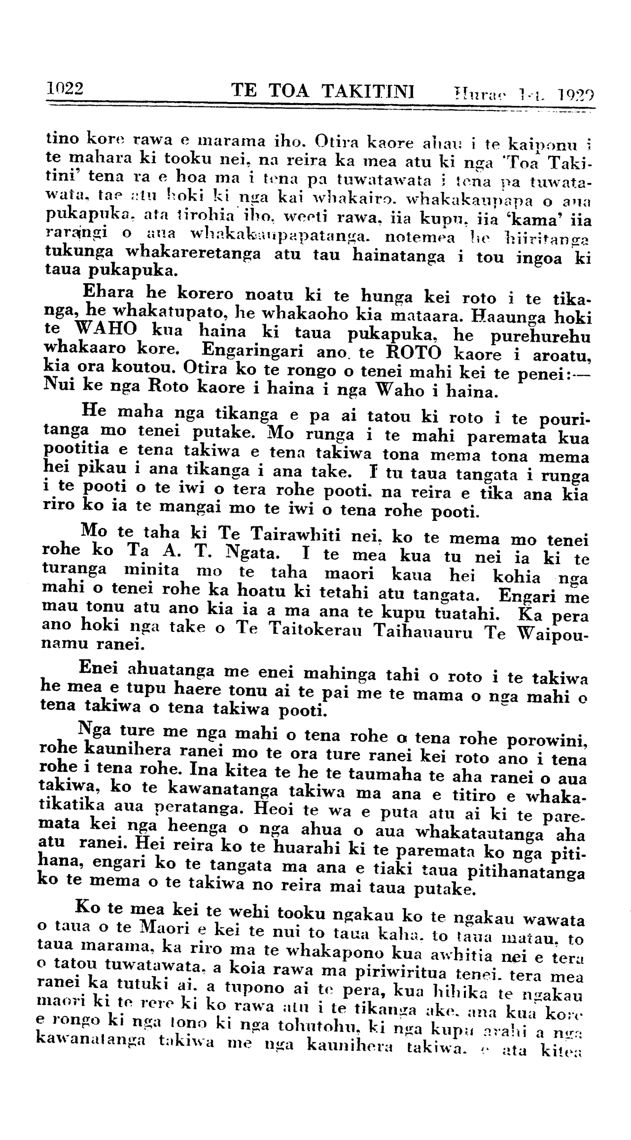 1018 TE TOA TAKITINI Hurae 1st, 1929