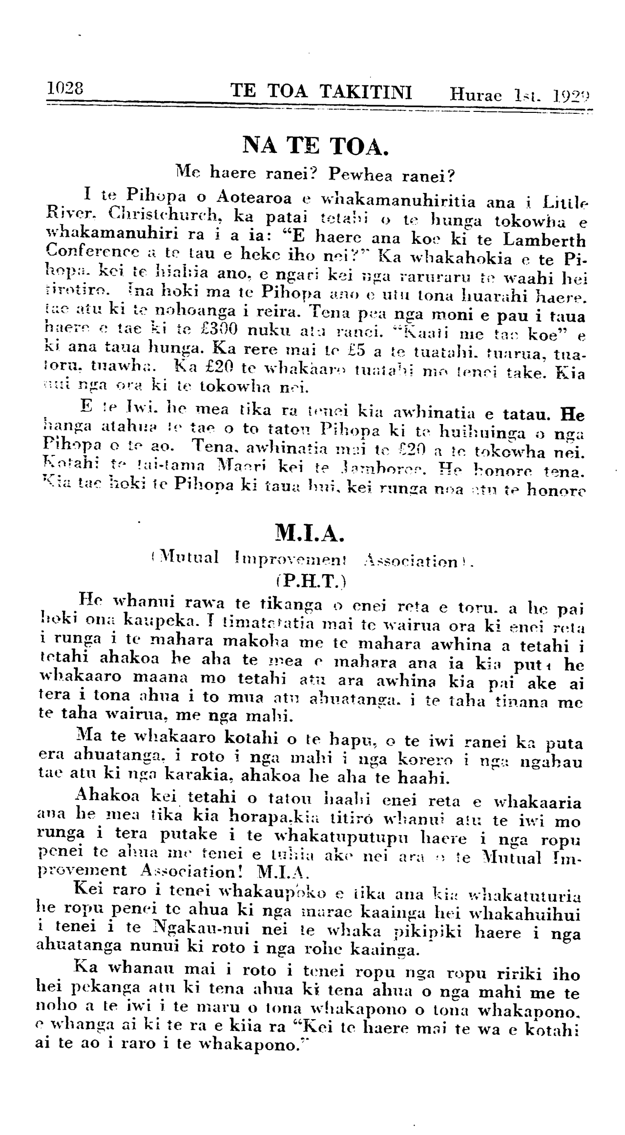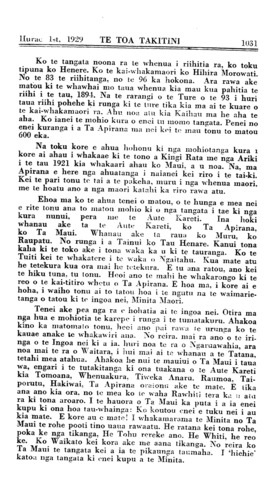 1034 TE TOA TAKITINI Hurae 1st, 1929