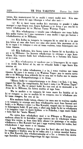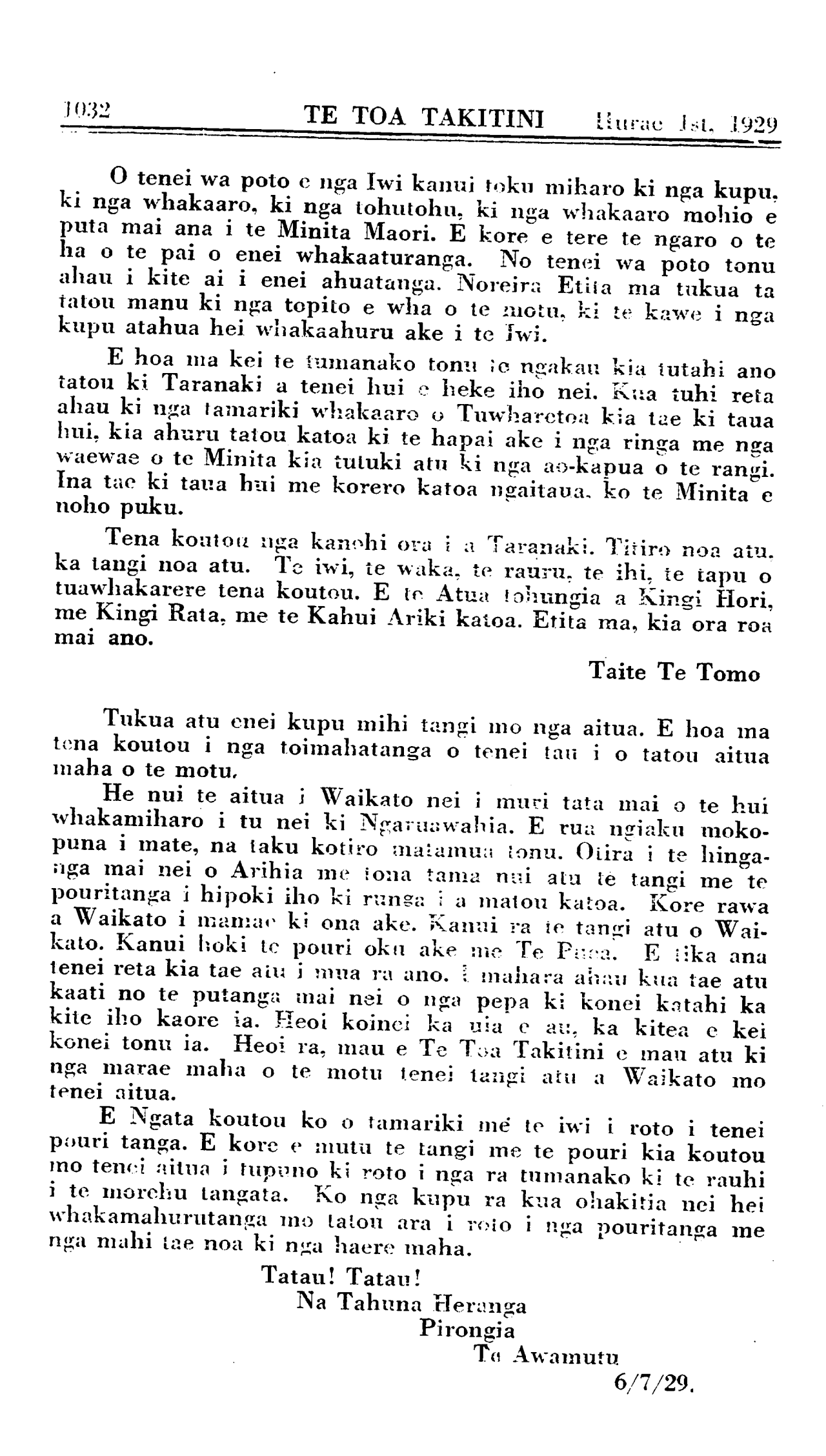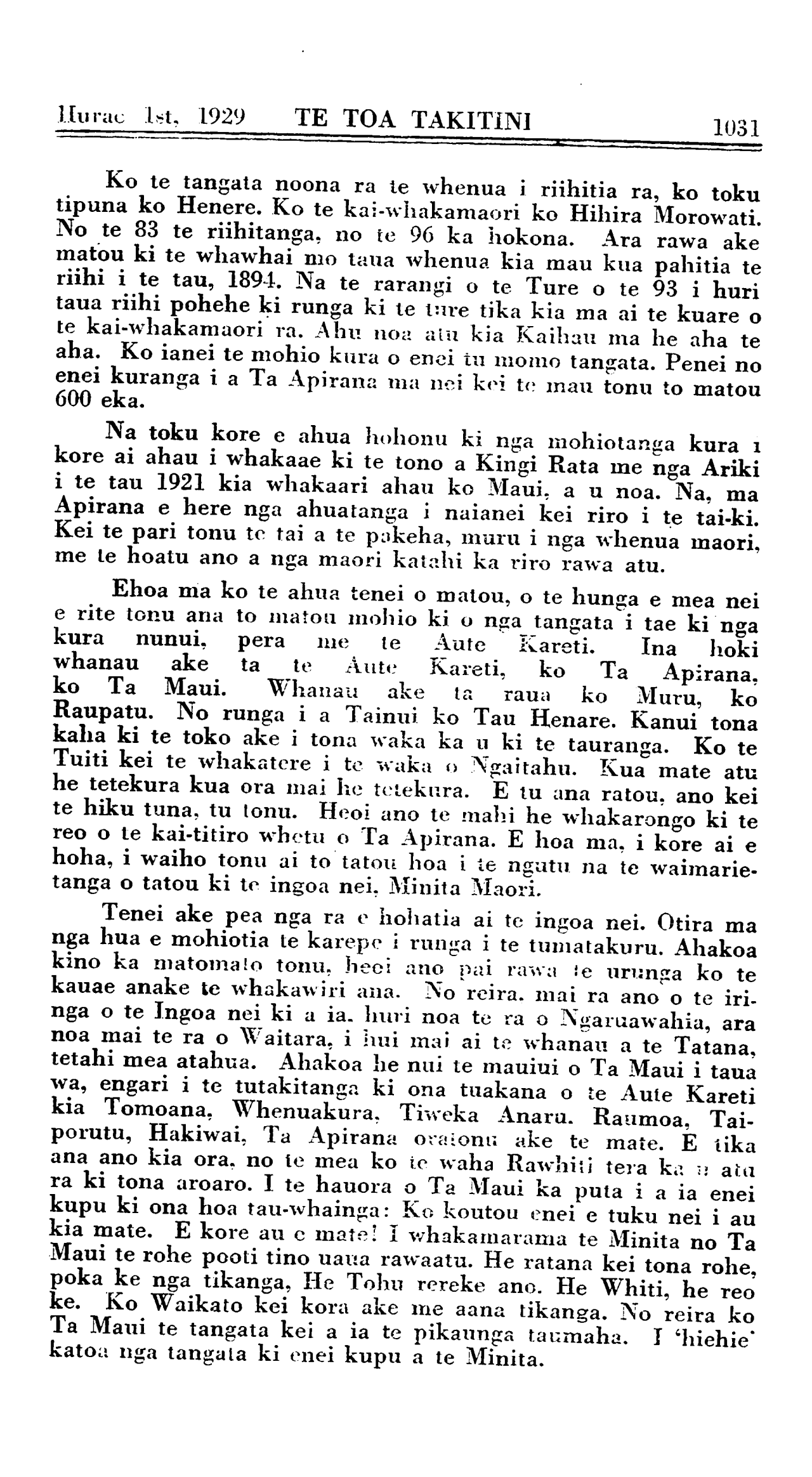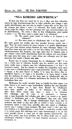 Hurae 1st, 1929 TE TOA TAKITINI 1033