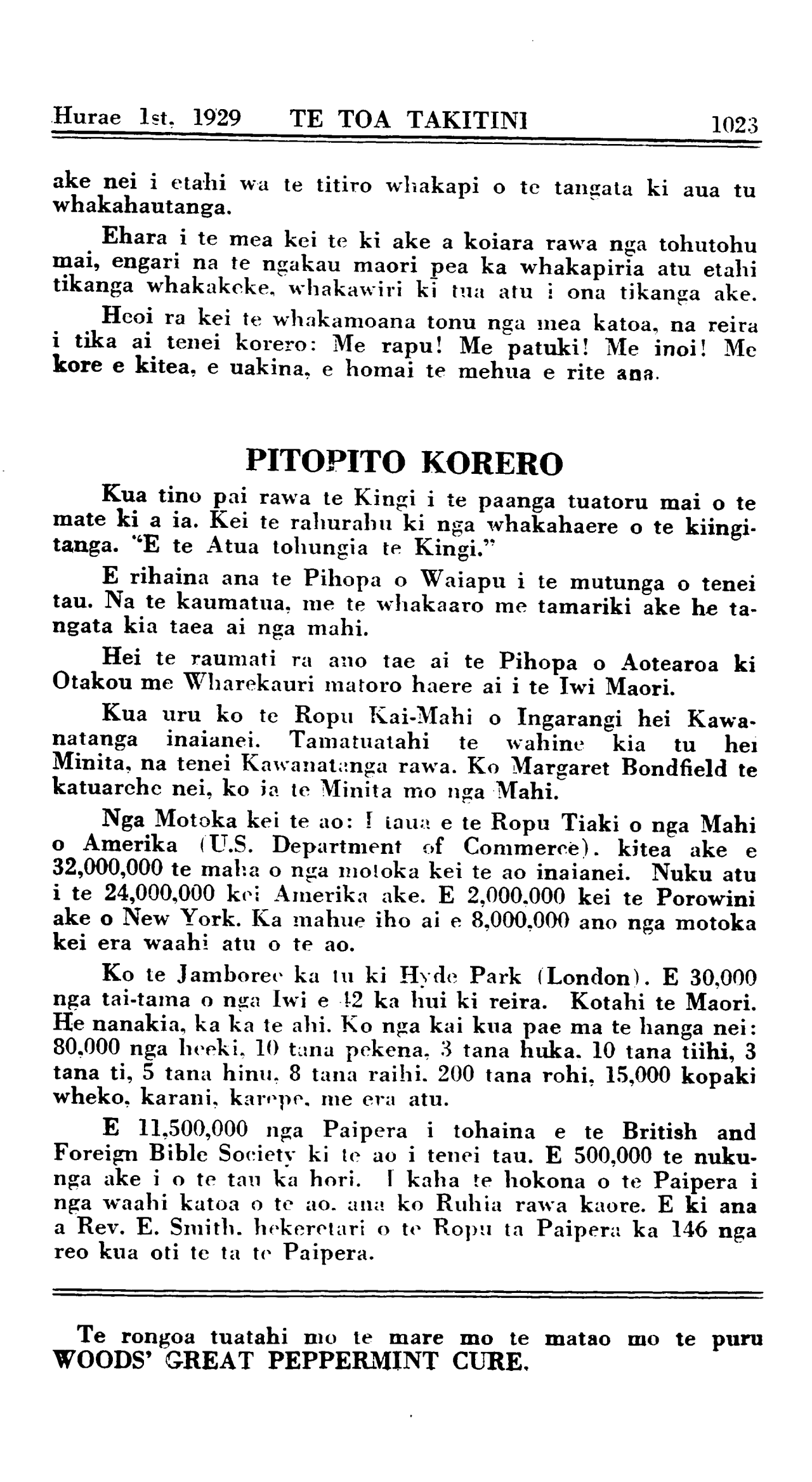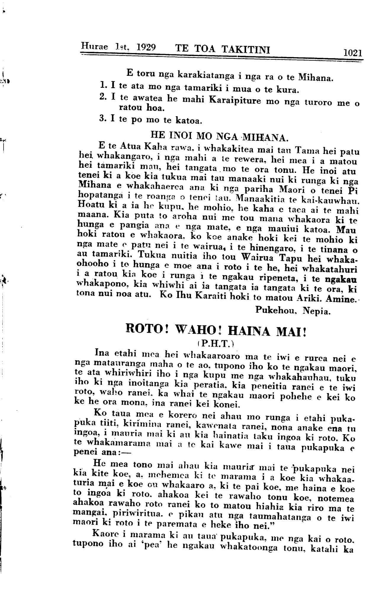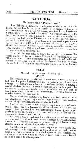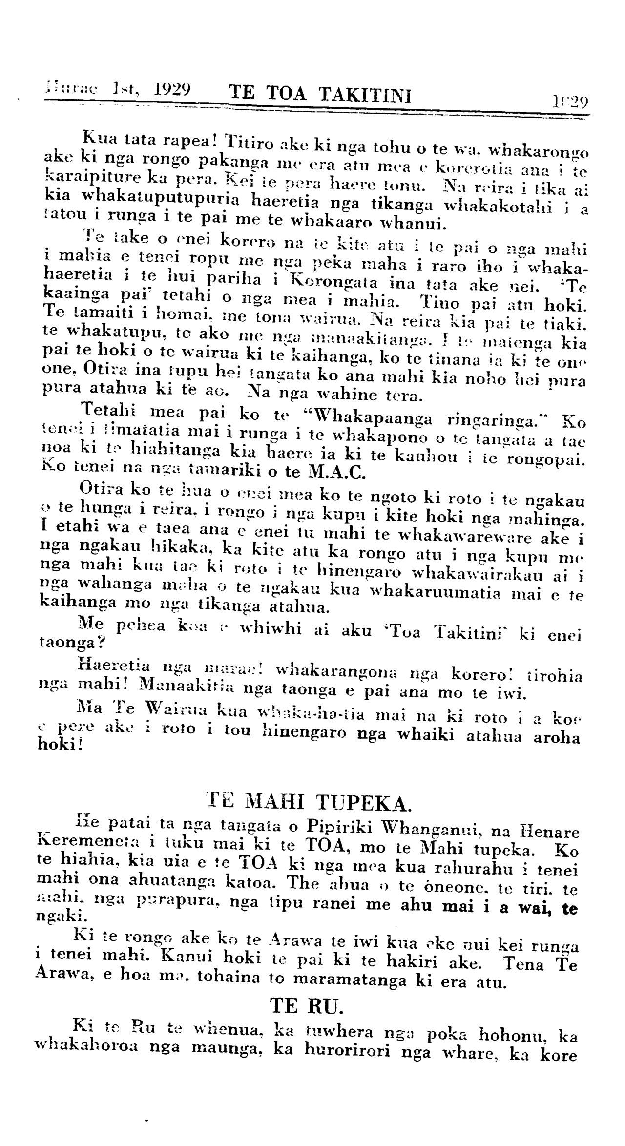 Hurae 1st, 1929 TE TOA TAKITINI 1033
