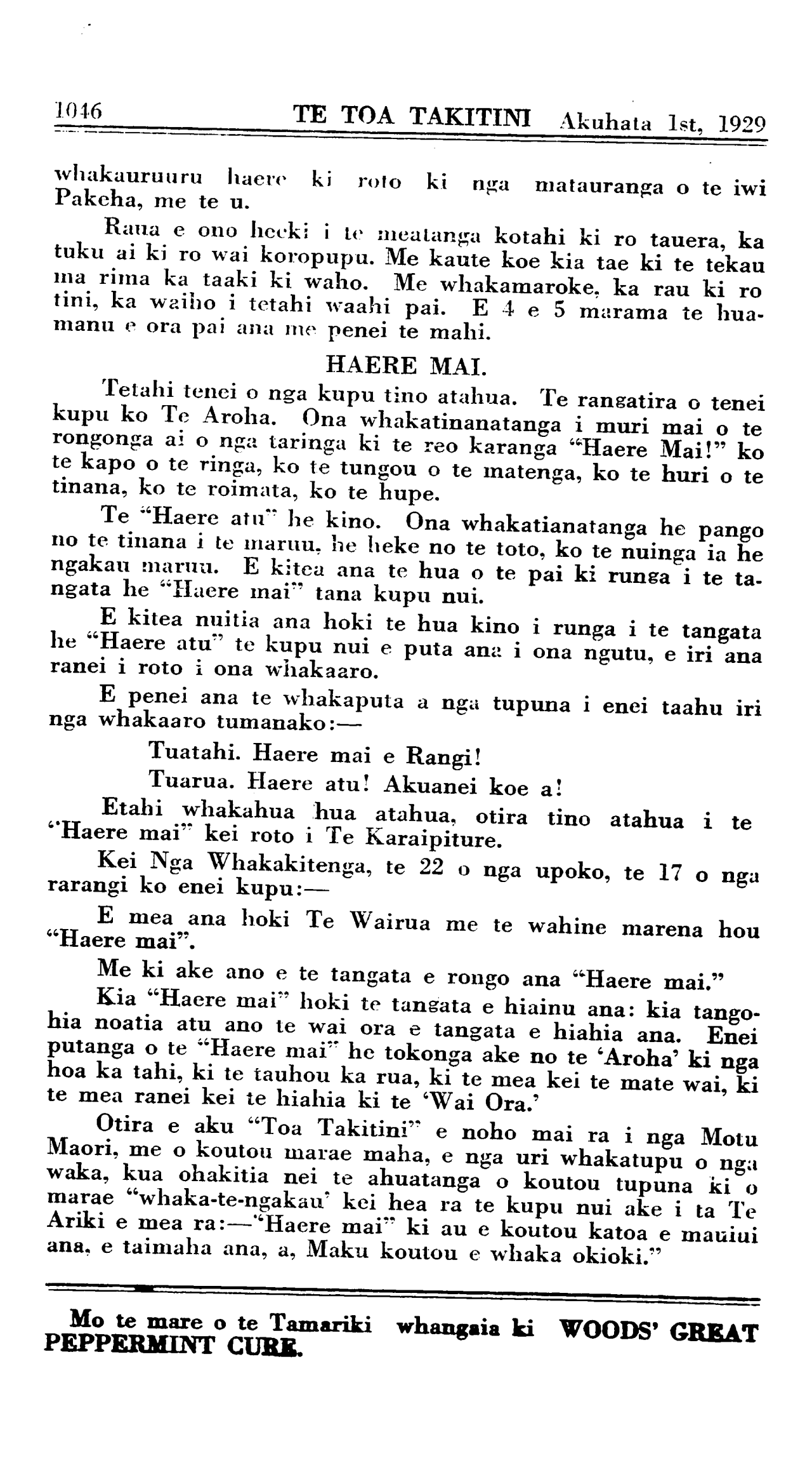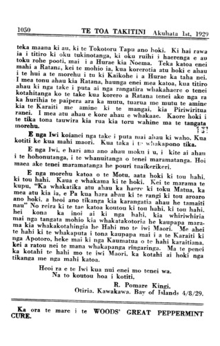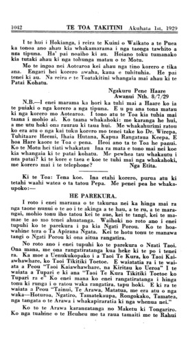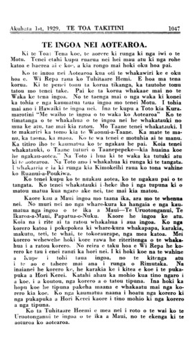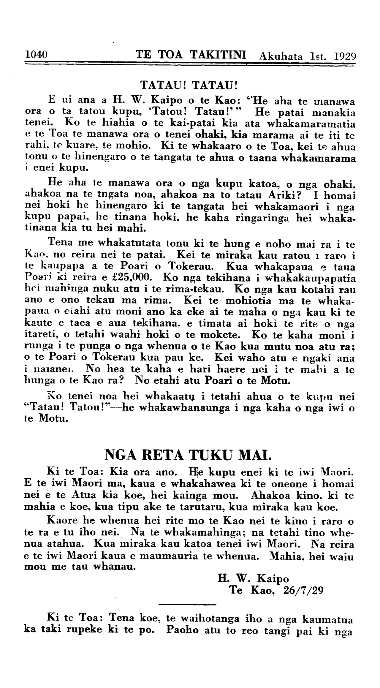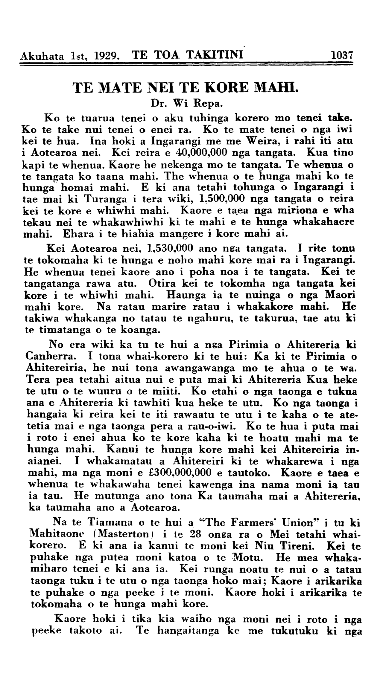 Akuhata 1st, 1929. TE TOA TAKITINI 1037