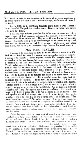 Akuhata Ist. 1929. TE TOA TAKITINI 1053